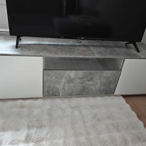 Sopii hyvin TV-tasoksi tai säilytyskalusteeksi, eikä puutteet vaikuta käytettävyyteen.
