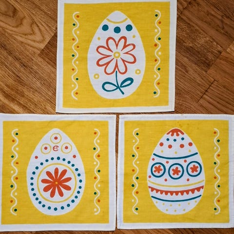 Myydään suloiset pääsiäisliinat, ruotsalaista designia 1950-luvulta. Nämä liinat tuovat iloa ja keväistä tunnelmaa kattaukseesi!