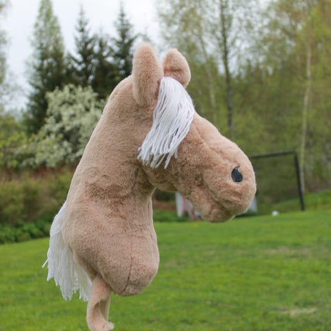 Myynnissä tyttären itse tekemä keppihevonen. Mukaan kaikki kuvassa näkyvä eli hevonen, keppi ja riimut.