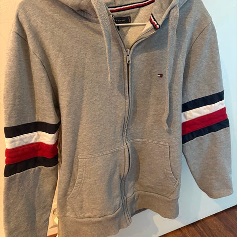 Myydään kuvan Tommy Jeans merkkinen hyväkuntoinen college paita koko S mutta menee kokoa M käyttävälle.
