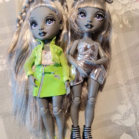 Rainbow high jr, yhteensä viisi kappaletta. Nukkejen hiukset ovat erilaisissa väreissä, kuten vaaleanpunainen, keltainen, valkoinen, violetti ja oranssi. Nukkejen vaatteet ovat monipuoliset ja värikkäät, sisältäen muun muassa hameita, takkeja, shortseja ja erilaisia yläosia. Nuket on suunniteltu leikkiin ja keräilyyn.