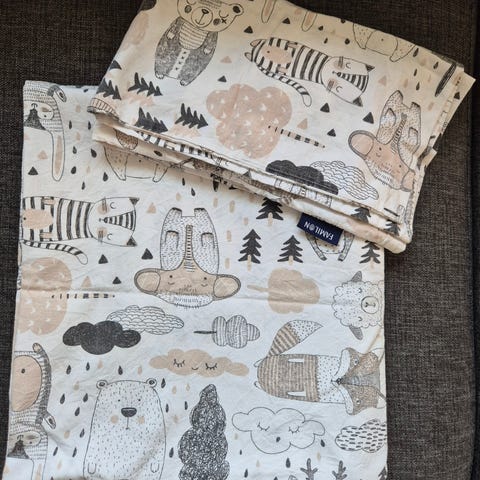 Junior koon pussilakanasetti setti. Hyvä kunto. Rumpukuivauksesta ruttuiset.