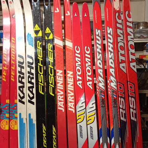 Hyväkuntoinen setti. Sukset 190cm, kahdet sauvat 150 ja 160cm, monot 43