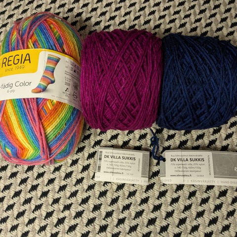 Pirtin Kehräämö dk-kampalanka, okra ja puolukka yhteensä noin 100g. Ei vyötettä tallessa.13.23 6.1.2026
