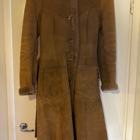 Hyvin pidetty naisten Friitala mokkaturkki 80-luvulta. Ajan tuomaa käytön jälkeä, siisti, hajuton, tahraton, ei reikiä. Säilytetty lämpimässä. Väri on hyvin vaalea harmaaseen taittuva. Kokeilin kuvata kirkkaassa valossa hieman tummaa kohtaa helmassa. Aito ja lämmin vintage mokkaturkki. Pituus n. 120 cm.