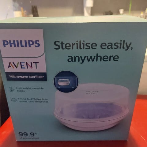 Näppärä Aventin höyrysterilointilaite vauvan tuttien ja tuttipullojen turvalliseen puhdistukseen. Tämä on tullut meille uutena ja säilytetty sisällä, meillä ei ole lemmikkejä ja olemme savuton koti. Helppokäyttöinen ja nopea!
