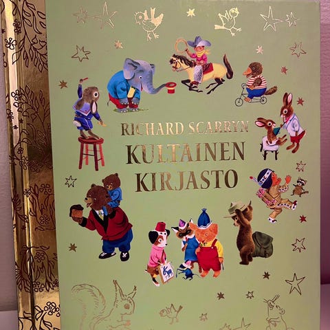 Richard Scarry Saturalli: sisältää 14 kpl Tammen kultaista satua Richard Scarryn kuvittamana. Erittäin hyvä kunto, kirjahyllyssä seisoskellut.