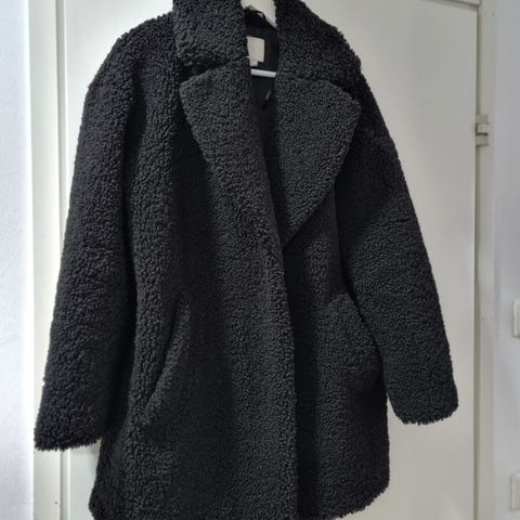 Englannista ostettu New Look -merkin musta pörrötakki, brittikoko 8 mikä vastaa Suomen S-kokoa, mutta menee myös pienelle M-koolle. Kai-kai n. 47cm, olka-helma 59cm. Ihana, lämmin ja superpehmoinen takki, kiinnitetään edestä hakasilla. Jäänyt takkipaljoudessa vähälle käytölle, tästä hyväkuntoinen talven pelastaja seuraavalle. Nouto Kaitaa/Espoo tai pk ostajalle, koirakoti.
