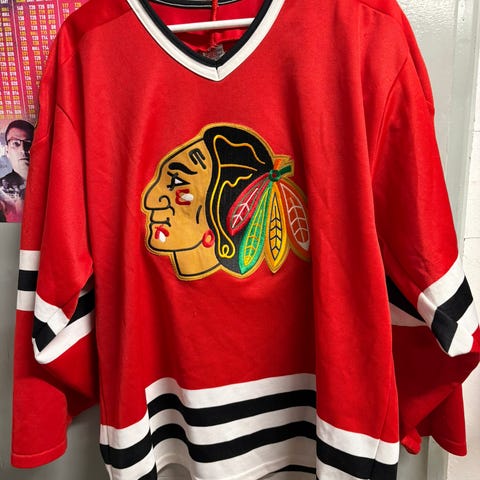 Oikein hyväkuntoinen jenkeistä tuotu Blackhawks-huppari vaikkapa ulkojäille. Koko XL, mutta jenkkityyliin reilu, vastaa XXL-kokoa lähemmäksi. Hienot "luistinnauhat" kiristysnauhoina. Resorit hihansuissa ja helmassa. Iso huppu. Eläinvapaa ja savuton talous.