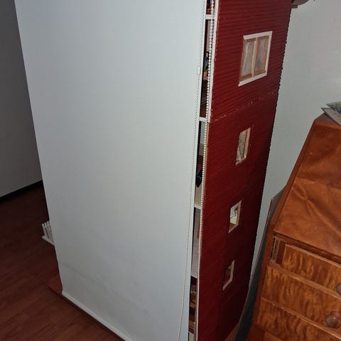 Kiva nukkekoti seuraavalle leikkijälle. Yleisilme siisti, muutamia kulumia löytyy sieltä täältä, mutta ei mitään suurta. Mukaan nukkekodin asukkaat, 4 kpl. Ei kalusteita.