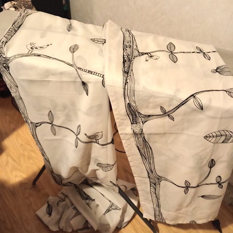 IKEA verhot, koko 145x250 cm, beige pohjaväri ja valkoiset ympyräkuviot. Materiaali 100% polyesteri. Sopii ikkunaverhoiksi ja sisustukseen. Pakkauksessa 2 verhoa, pakkausta ei ole avattu. Netistä löytyy googaalalla kuvia näistä verhoista.