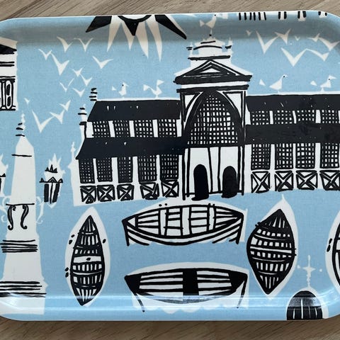 Käyttämätön tarjotin, mitat 27,5 cm x 13 cm.