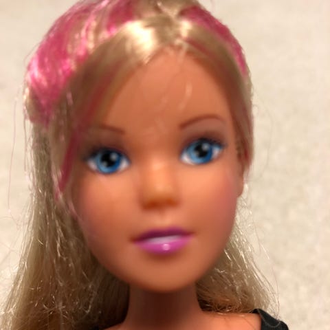 Barbie lasten lelu nukke, jossa on vaaleat hiukset ja värikäs asu. Nukke soveltuu lasten leikkeihin ja keräilyyn.