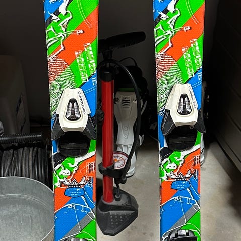 Vähän käytetyt (nainen) lasketteluvälineet, sukset, sauvat, monot, kypärä