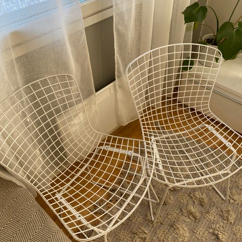 2 kpl harmaita tuoleja. Istuinosa tuollaista samettikangasta, jalat mustaa metallia. Erinomaisessa kunnossa!