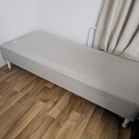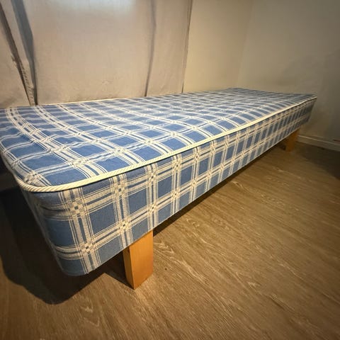 Hyväkuntoinen IKEA Sultan runkopatja 80x200cm tammi jaloilla + IKEA Tuddal petauspatja. Vain nouto.
