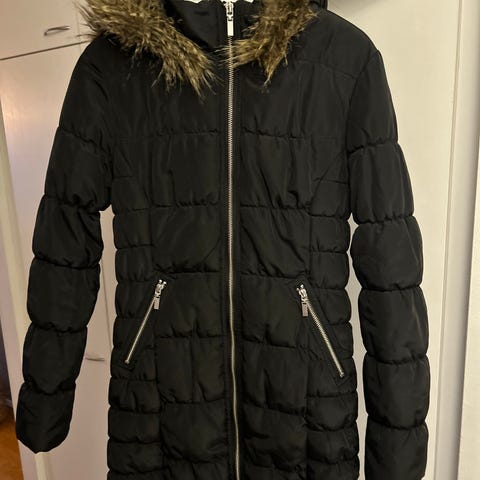 Vartalonmyötäinen kaunis Orsayn toppatakki XS-S kokoiselle. Alin nappi puuttuu ja kiristysnarut kuluneet mutta muuten vielä kelpo takki!