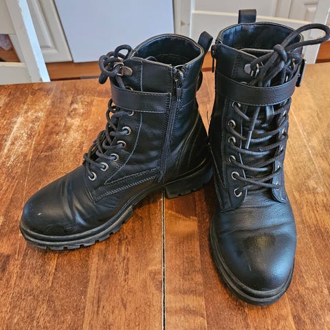 Hyvä kuntoiset nilkkurit koko 37. Kummassakin varressa hyvin vähän kulumaa, saa ehkä mustalla värillä peitettyä.