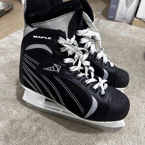 Myydään pari kertaa käytetyt Maple jääkiekkoluistimet. Koko 39, pohjan mitta n. 25,5cm.