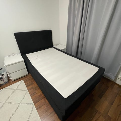 Siisti ja hyväkuntoinen 120cm sänky petarilla. Ehjä ryhdikäs, myös keskijalka ehjä. Ollut toisessa vierashuoneessa. Hinta 60€ sisältää nyös tuon Piscinan tekemän 7 cm paksun petauspatjan. Eläintalous jossa kissa ja koira.