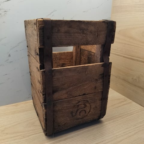 Vanha olutlaatikko ja lasipullo.