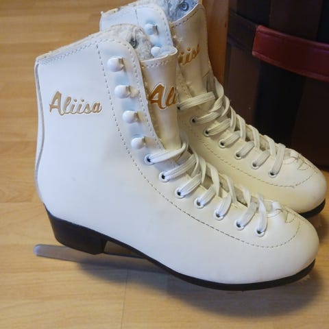 Kaunoluistimet kokoa 37, nilkassa teksti "Aliisa". Terät hyvässä kunnossa, mutta vaatii teroituksen.