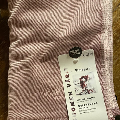 Finlayson Elefantti kylpypyyhe, koko 70x150 cm. Pyyhe on valmistettu puuvillasta ja siinä on sininen elefanttikuosi. Soveltuu käytettäväksi kylpy- tai rantapyyhkeenä. Uusi ja laput vielä kiinni, eli menee vaikka lahjaksi.
