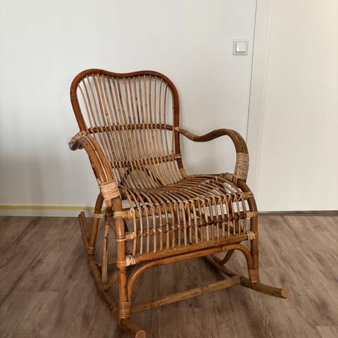Hyväkuntoinen ja ehjä rottinkinen keinutuoli. Voidaan purkaa kuljetuksen ajaksi.