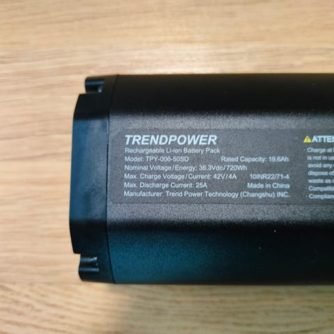 Vähän käytetty TrendPower sähköpyörän akku 19.6Ah, 720Wh.