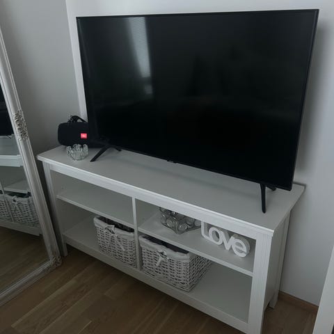 Myydään valkoinen Ikean Brimnes tv-taso.