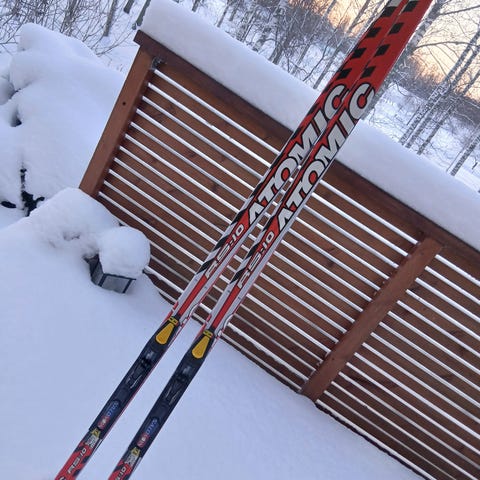 Atomic 163cm luistelusukset. Lisäksi sauvat, joiden pituus on 140 cm. Hyvät nuorelle hiihtäjälle. Pakettihinta 55e.