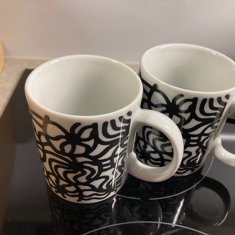 Myydään Marimekon Joonas-mukit, suunnittelijana Maija Isola. Yhdessä kupissa pieni lohkeama (ks. kuva).