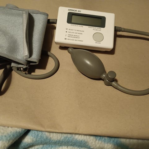 Käytetty, mutta toimiva vernpainemittari. Mansetti sopii normaaleille aikuisen käsivarsille. Paksuimmille käsivarsille tämä on liian pieni.