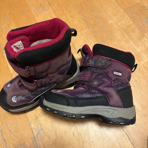Reima lasten talvikengät, koko 29. Kengissä on musta pohja ja yläosa, jossa on vaaleanpunainen ja violetti kukkakuosi. Sopivat kylmiin olosuhteisiin ja lasten käyttöön.