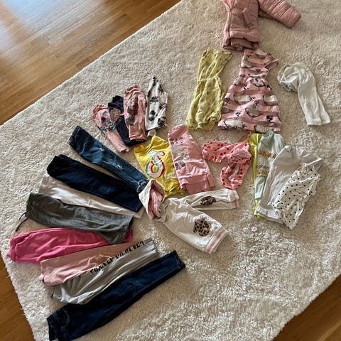 Kuvasin vaatteita erikseen ja kertoilen kuvien yhteydessä jos jotakin mainittavaa. Luethan nämä siis tarkasti. Vaatteet käytettyjä, joten luontaista kulumaa toki yleisesti on. Vaatteita paketissa yli 40kpl:tta.