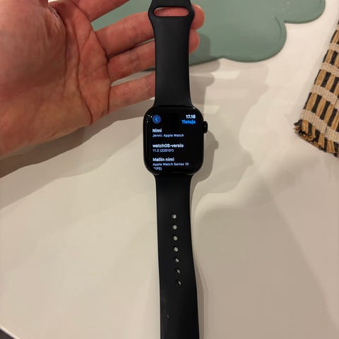 Luonnonvaalea titaani, 46mm. Ei naarmuja / kolhuja tms. Akun kunto 100%. Mukaan kello, kuvissa näkyvä Applen ranneke ja laturi.