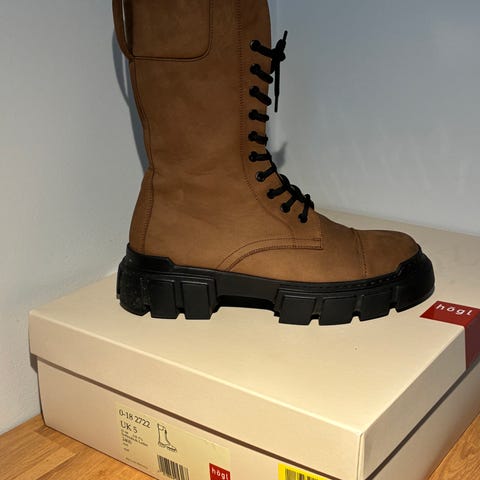 Höglin, mustat aitoa nahkaa olevat nilkkurit, kokoa 6 eli 39. Korko n. 9.5 cm, mutta päkiän alla olevan paksun platoopohjan ansiosta ovat todella hyvät jalkaan. Päkiän alla pitävä, rouhea pohja, joten käyvät mihin vuodenaikaan vain.