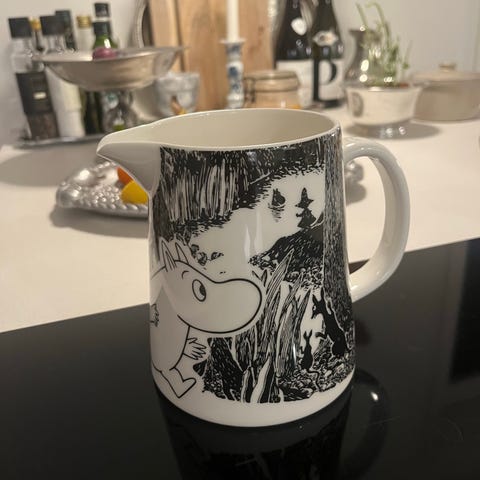 Myydään Muumi Seikkailusarjan 1 litran kannu.