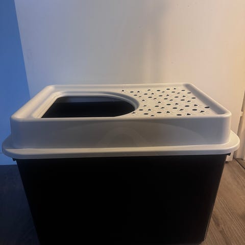 Käytännöllinen kissanvessa, johon kuljetaan katon kautta! Vessa tarjoaa yksityisyyttä kissalle ja vähentää hiekan kulkeutumista ympäristöön. Katossa olevien reikien kautta kissanhiekka pääsee putoamaan tassuista takaisin vessaan. Reilun kokoisesta kulkuaukosta mahtuu kulkemaan isompikin kissa.