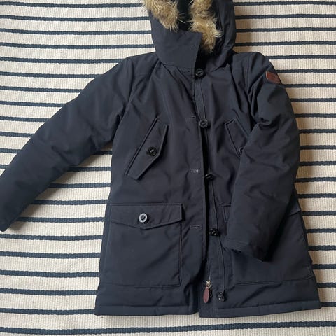 Myydään erittäin hyvä kuntoinen vain muutaman kerran käytetty Peakin Jill parka, tekoturkis kauluksella. Hupussa sisäpuolella lämmin tekokarvavuori. Aivan ihana päällä. Hihansuissa ranteeseen pujotettava peukkulenkillä lumilukko, pitää hyvin lämmön. Takki vastaa lämpöominaisuudeltaan ja malliltaan hyvin paljon Canada Goose takkia. Erittäin lämmin kovaan pakkaseen! ovh 380e Ostettu Intersportista. Käy hyvin M-L kokoiselle. Hinaan 180e