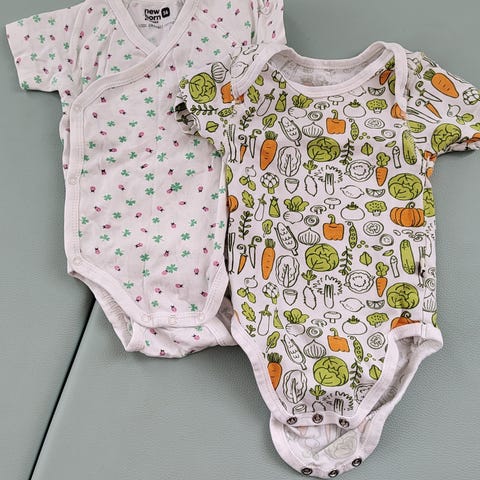Vihreä frotee Tuttatuotteen kietaisu pusero koko 55 ja ruutukuosiset frotee potkuhousut koko 55. Hakusanoja: Retro , vaate, vauva