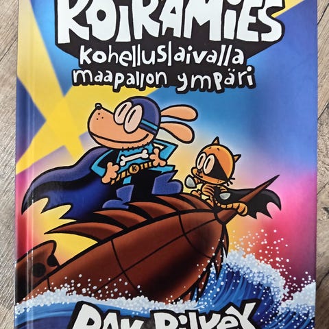 Kuvan koiramieskirjat, yksi kisulin sarjiskerho ja yksi pupu vs apina (koiramiestä vastaava kirja) kaikki luettu kertaalleen läpi, uudenveroisessa kunnossa.