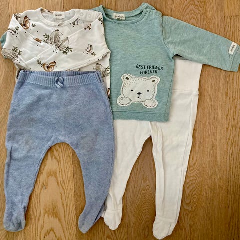 Uudenveroinen Newbie vaatesetti koossa 74 ja 86. Bodyt ja pitkähihaiset 100% puuvillaa ja housut 98% puuvillaa ja 2% elastaania.