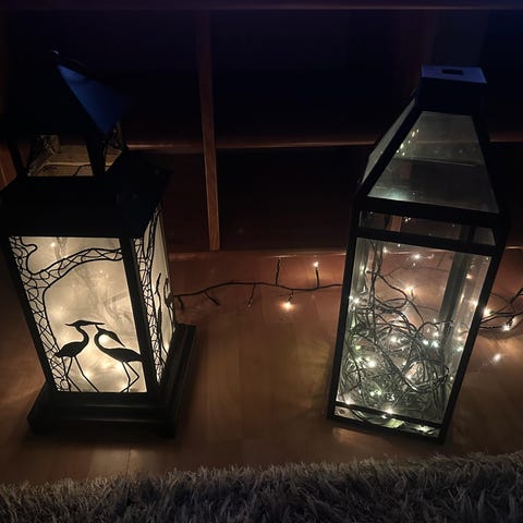 Kovia kokenut lyhty,vain yksi lasi jäljellä .