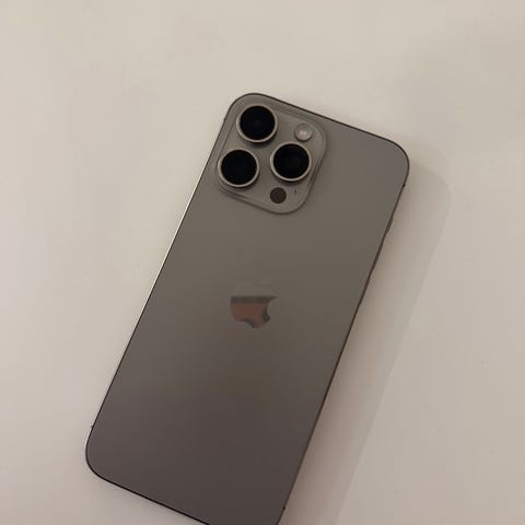 Apple iPhone 15 Pro älypuhelin, jossa on 256 GB tallennustilaa. Kunto on erinomainen, kaikki rungossa olevat jäljet näkyvät kuvissa. Akun kunto on 91%.