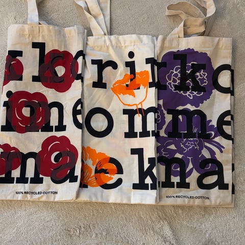 Myydään 4kpl setti Marimekko-kasseja - sis. mm. 2kpl Artek x Marimekko -kassi. Kaikki yhteensä 60 euroa.