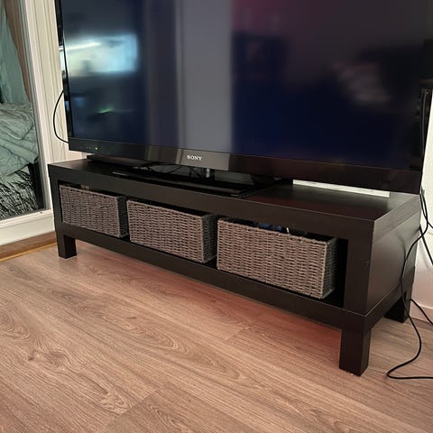 Hyväkuntoinen IKEA LACK TV-taso 120x35x36. Hyväkuntoinen ja siisti, tukeva perusratkaisu televisiolle.