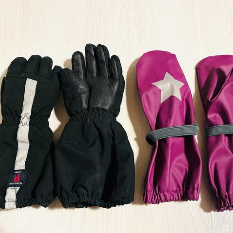 Muutaman kerran pidetyt hanskat, tyttö ei näistä jostain syystä tykännyt ja nyt jo pienet. Hanskoja ei ole pesty käytön jälkeen (pesulle ei tarvetta).