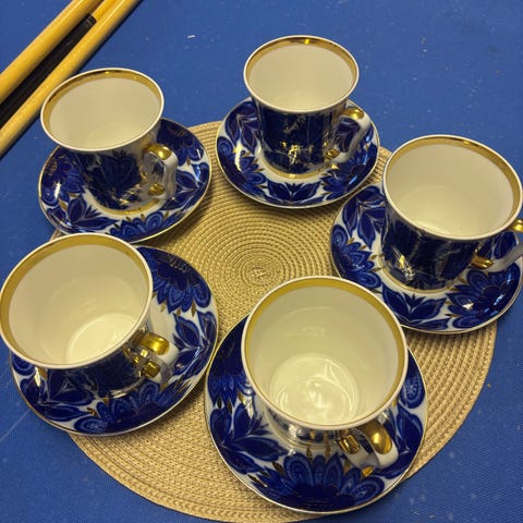 6 hengelle teekupin asetilla