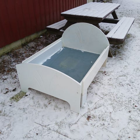 Kahdella lapsella muutamia kertoja käytössä ollut kokoontaitettava matkasänky + kantokassi. Patjan yksi paneeli haljennut joka merkattu viimeiseen kuvaan. Patjan kankaan avaamalla ja pienellä fiksauksella tai patjaa vaihtamalla halutessaan tästä saa vielä kelpo sängyn käyttöön. Runko moitteettomassa kunnossa ja ehjä.